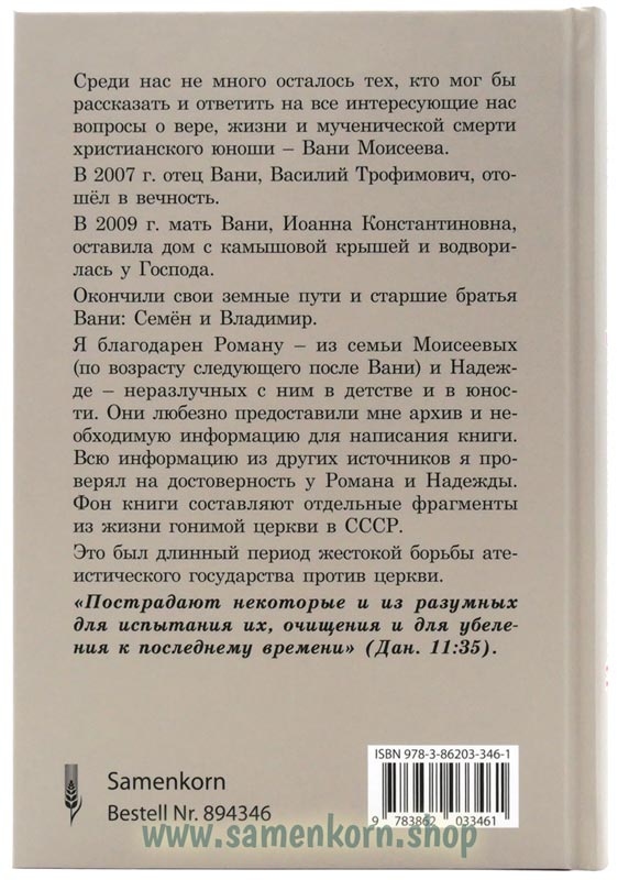 Книга о герое веры Иване Васильевиче Моисееве (1952 - 1972)
