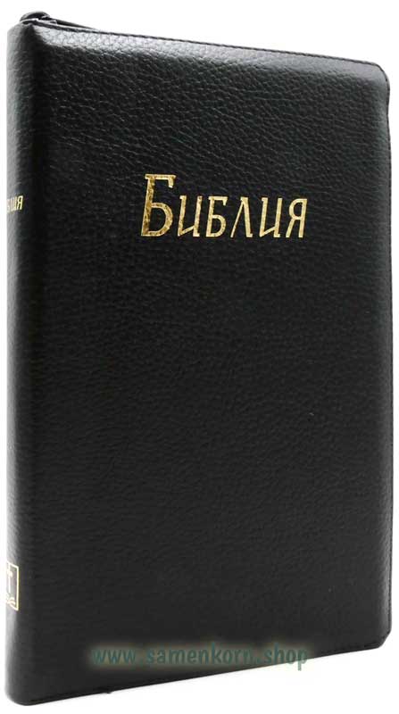Кожаная обложка, позолоченный обрез, с поисковыми индексами, на молнии, цвет чёрный