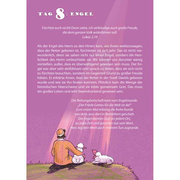 Auf den Seiten diese Heftchens erfährst du in der Adventszeit jeden Tag etwas rund um die Geburt des Heilands Jesus Christus. Du lernst Dinge, Personen und Begebenheiten kennen, die mit diesem wichtigen Ereignis zu tun haben. So kannst du dich schon während der Wartezeit mit verschiedenen Aspekten von Weihnachten beschäftigen.