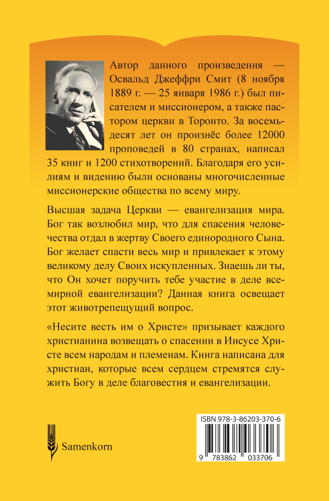 Высшая задача Церкви - евангелизация мира. Бог так возлюбил мир, что для спасения человечества отдал в жертву Своего единородного Сына. Бог желает спасти весь мир и привлекает к этому великому делу Своих искупленных. Знаешь ли ты, что Он хочет поручить тебе участие в деле всемирной евангелизации? Данная книга освещает этот животрепещущий вопрос. Она написана для христиан, которые всем сердцем стремятся служить Богу в деле благовестия и евангелизации.