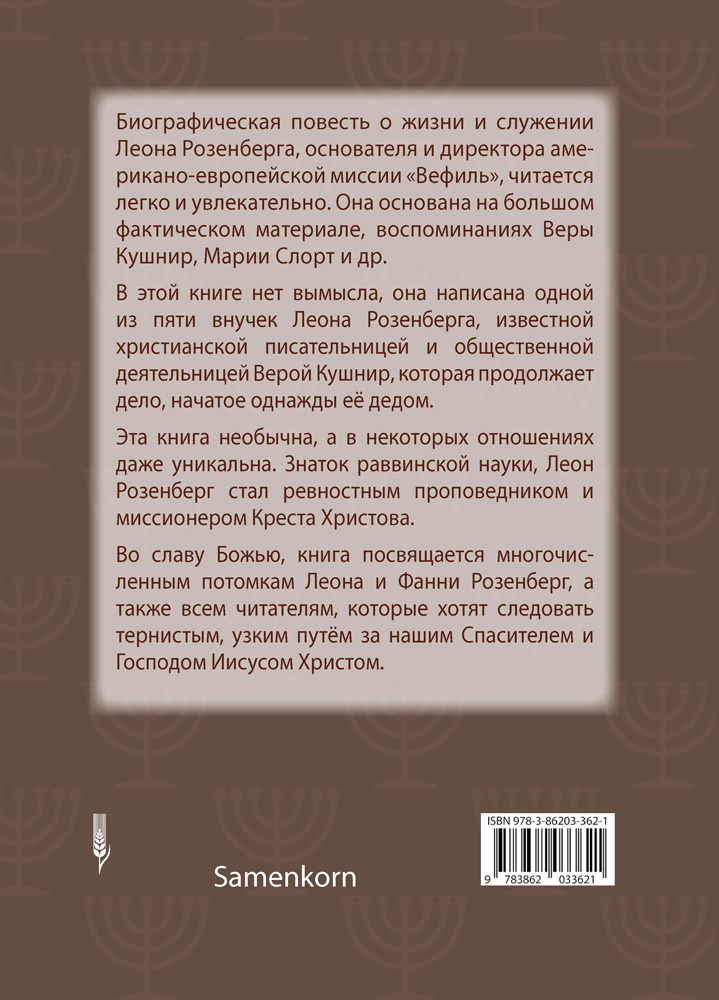 Биографическая повесть о жизни и служении Леона Розенберга, основателя и директора американо-европейской миссии «Вефиль», необычна, а в некоторых отношениях даже уникальна. Знаток раввинской науки стал ревностным проповедником и миссионером Креста Христова.